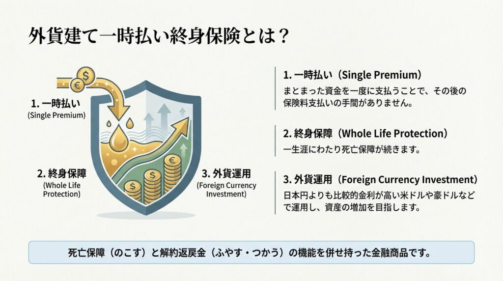 【外貨建て一時払い終身】について解説 ▶くわしくはこちら